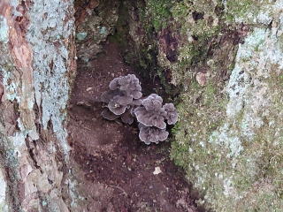 | (画像E) 大木なのに小さいのが2株。 | (画像F) 白系の舞茸。 | |