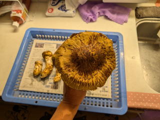 | 松茸も終わったと思いましたが、まだ蕾がありました、 まだまだ採れそうな感じですが、ナメコの探索も行かないとなので、次回はどっちの探索に行こうか考え中です。 2025年 天然松茸 110本 +5本 累計115本 シロートですので、名前等間違い等があるかと思いますが、お許し下さい。 |