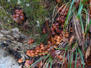 | (画像G) これは大型のナメコでした。 | (画像H) 今年にしては群生。 | |