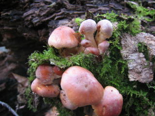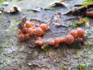 | さらに奥には、(画像N)〜(画像T) ブナの倒木にぎっしりではありませんが、ナメコを発見しました。 今年は雨が少ないせいか昨年ほどの爆発的な発生はなく、今回の採集量は、少なかったでした。 |